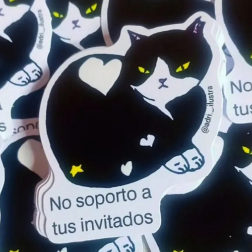 sticker gato no soporto a tus invitados. Es de vinilo resistente a todo con laca sectorizada