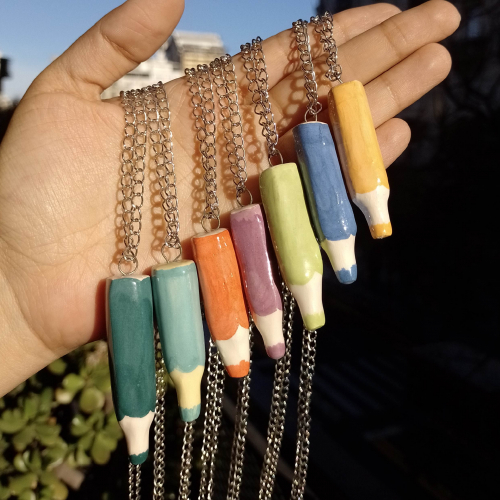 Collares de cerámica con forma de lápiz de color, incluye la cadenita.