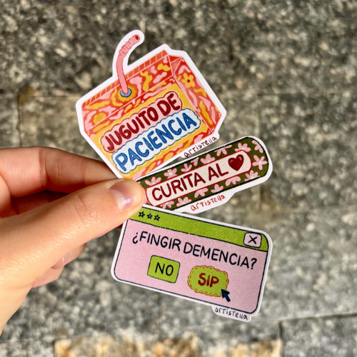 Stickers: juguito de paciencia, curita al corazón y fingir demencia