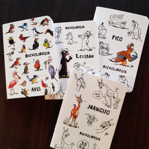 Libretas A6 de 80 hojas blancas con 4 diseños originales de nuestros personajes y aves nativas.