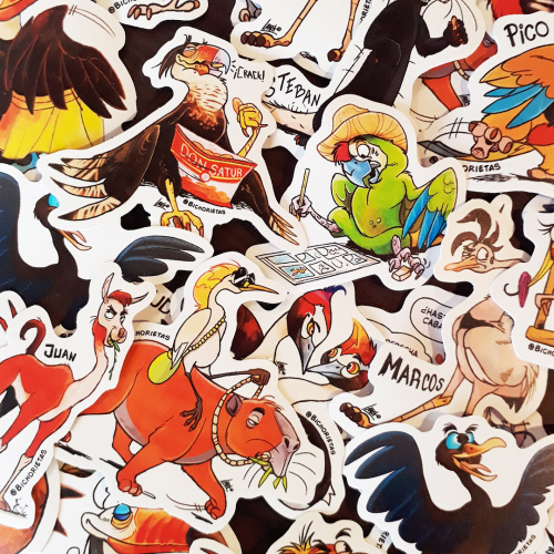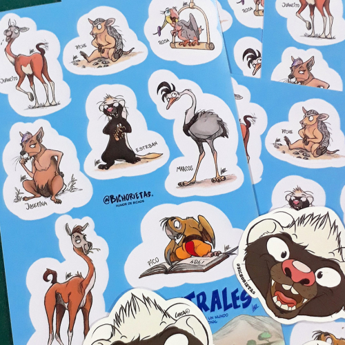 Plancha de stickers en vinilo con los personajes de nuestro comic virtual de bichos patagónicos. Disponible en nuestro instagram.