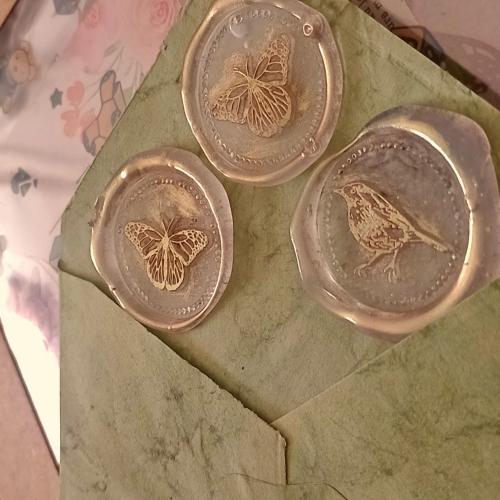 3 sellos con diseños listos para decorar tus sobres, cuadernos o cualquier superficie.