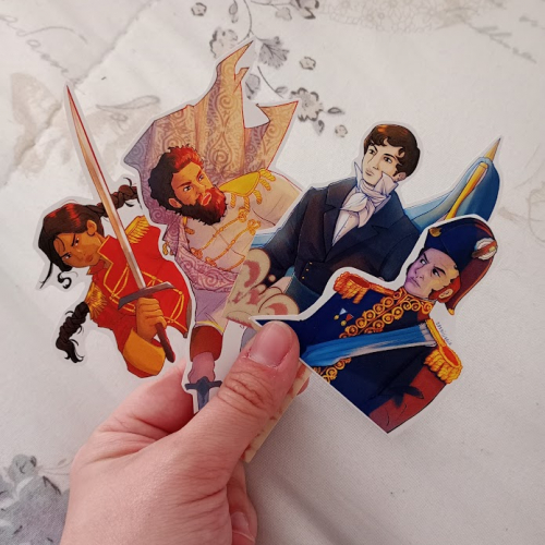 Stickers de tres categorías, con diferentes valores de precio. Distintos fandoms, entre ellos: Club Winx, Sakura Card Captors, Taylor Swift, videojuegos, Bridgerton. En imagen: stickers de próceres argentinos.