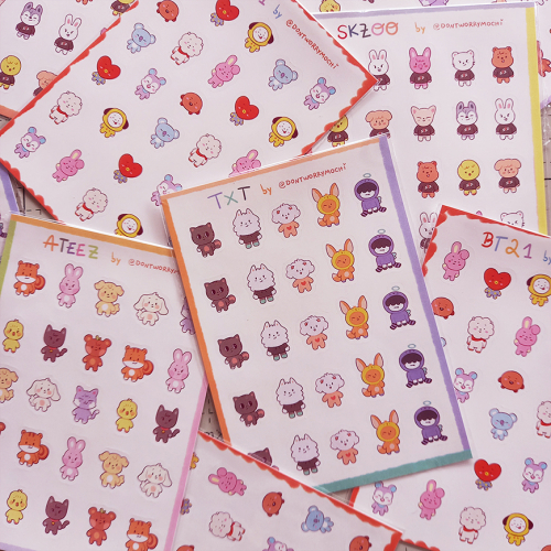 Planchas de stickers troquelados, impresos en papel opp mate.