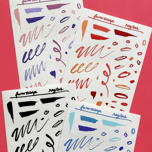 planchas con más de 30 stickers de misceláneas! disponible en negro, rojo, celeste y lila.
