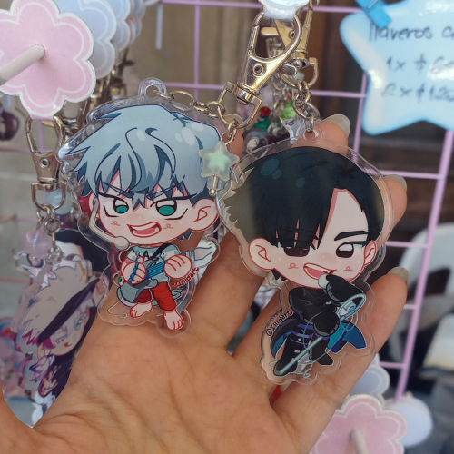 Llaveros impresos en acrílico holografico o transparente de distintos personajes.