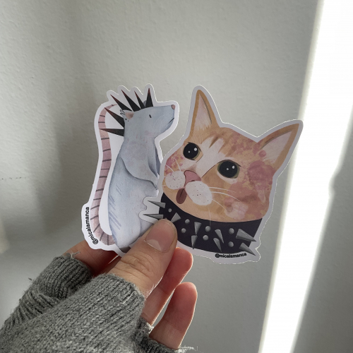 Serie de stickers de animalitos con indumentaria punk