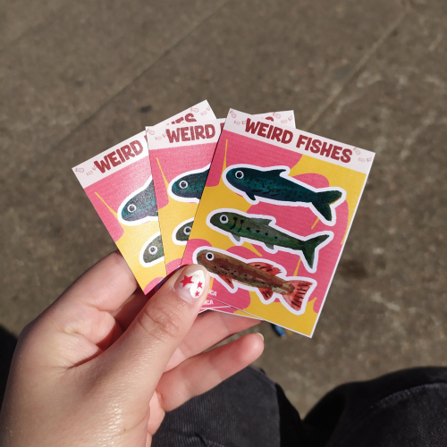 Planchas pequeñas de peces hechos con acuarela