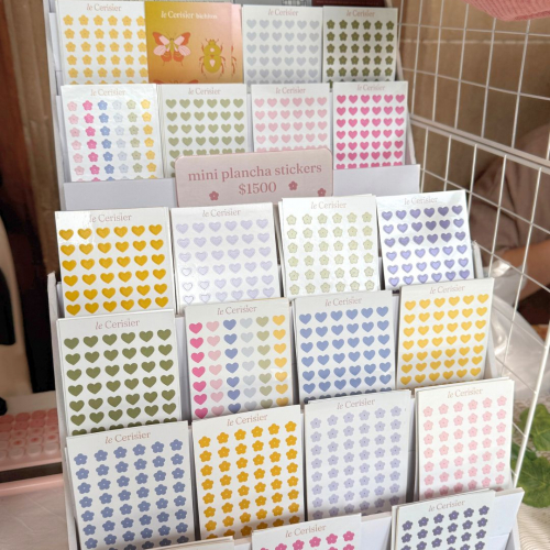 Planchitas de stickers troquelados de muchas temáticas, formas y colores.