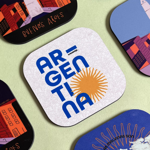 Productos ilustrados. Posavasos sublimados que se pueden transformar en imanes o mini cuadritos coleccionables.