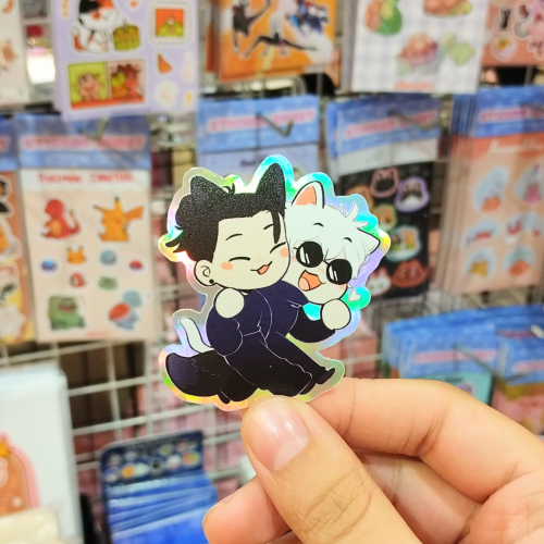 Stickers de vinilo holográfico impresos en UV-LED con alta resistencia a todo tipo de usos. Son resistentes al agua, roce y uso continuo y aptos para ser aplicados en exteriores, termos, celulares, vehículos, papel. Medida aproximada: 6x6cm.