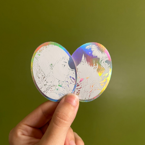 Sticker holográfico de Hikaru y Yoshiki del anime "The Summer Hikaru Died"