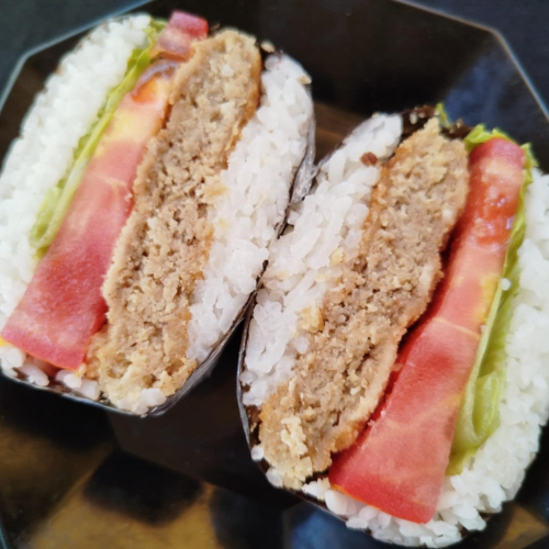 Hamburguesa de pan al vapor con forma de Kitty, con milanesa, tomate y lechuga