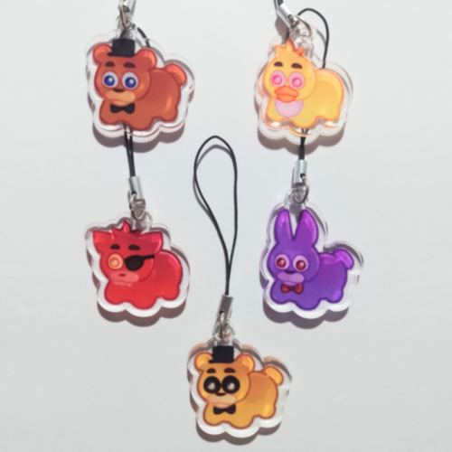 Charms de los 5 principales de la franquicia fnaf en tamaño chikito,Freddy,chica,bonnie, Foxy y Golden freddy