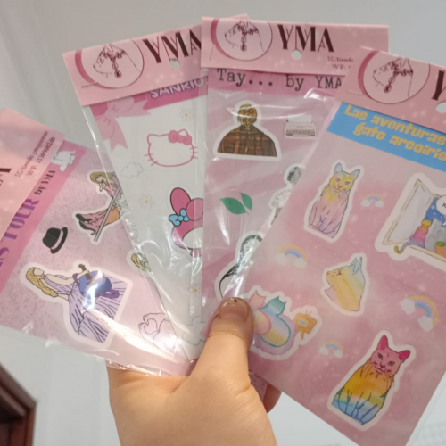 Plancha temática con cinco stickers. Varios modelos.