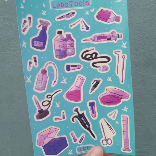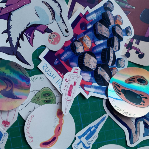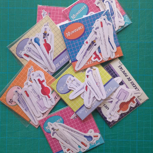 Stickers de distintos tamaños. Vinilo y Papel adhesivo de ilustración mate