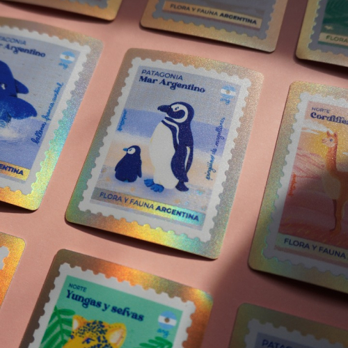 Estampillas en holográfico gold de animales de distintas regiones de nuestro país
