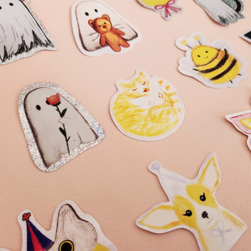 Stickers en vinilo UV. Blancos, holográficos, glitter y más.